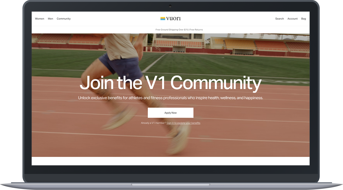 Vuori’s V1 Community is a VIP program for athletes, trainers, and wellness professionals; offering exclusive perks and early access to product drops. But as the program grew, the experience stagnated. Customers were led to confusing flows, internal teams juggled manual processes, and in-store staff lacked the tools to properly support members-only benefits.